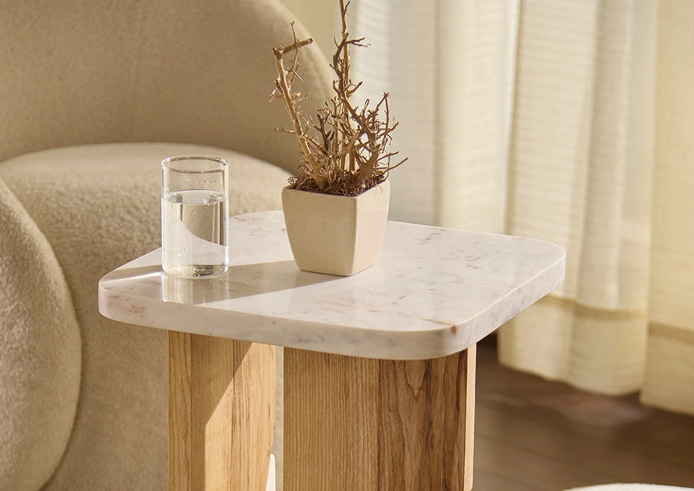 - Solid ashwood and white marble leg with a smooth, matte finish.