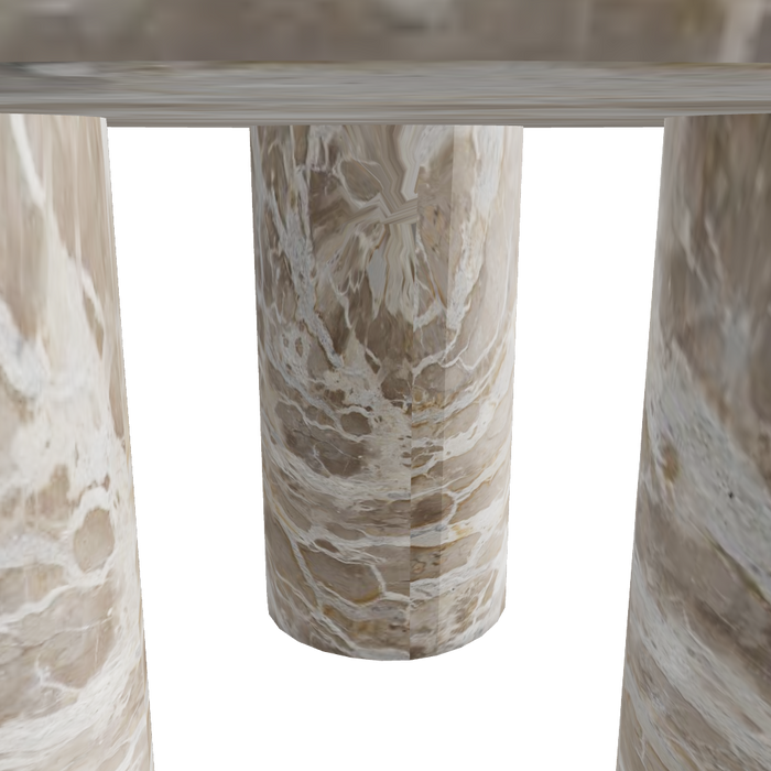 A bold interplay of geometry and material, the Column Series reimagines the classic bowl with architectural intent. Elevated on three cylindrical legs and carved from richly veined marble, each piece is a sculptural statement, both functional and ornamental. Designed to anchor a space with its weight and form, no two are ever exactly alike.