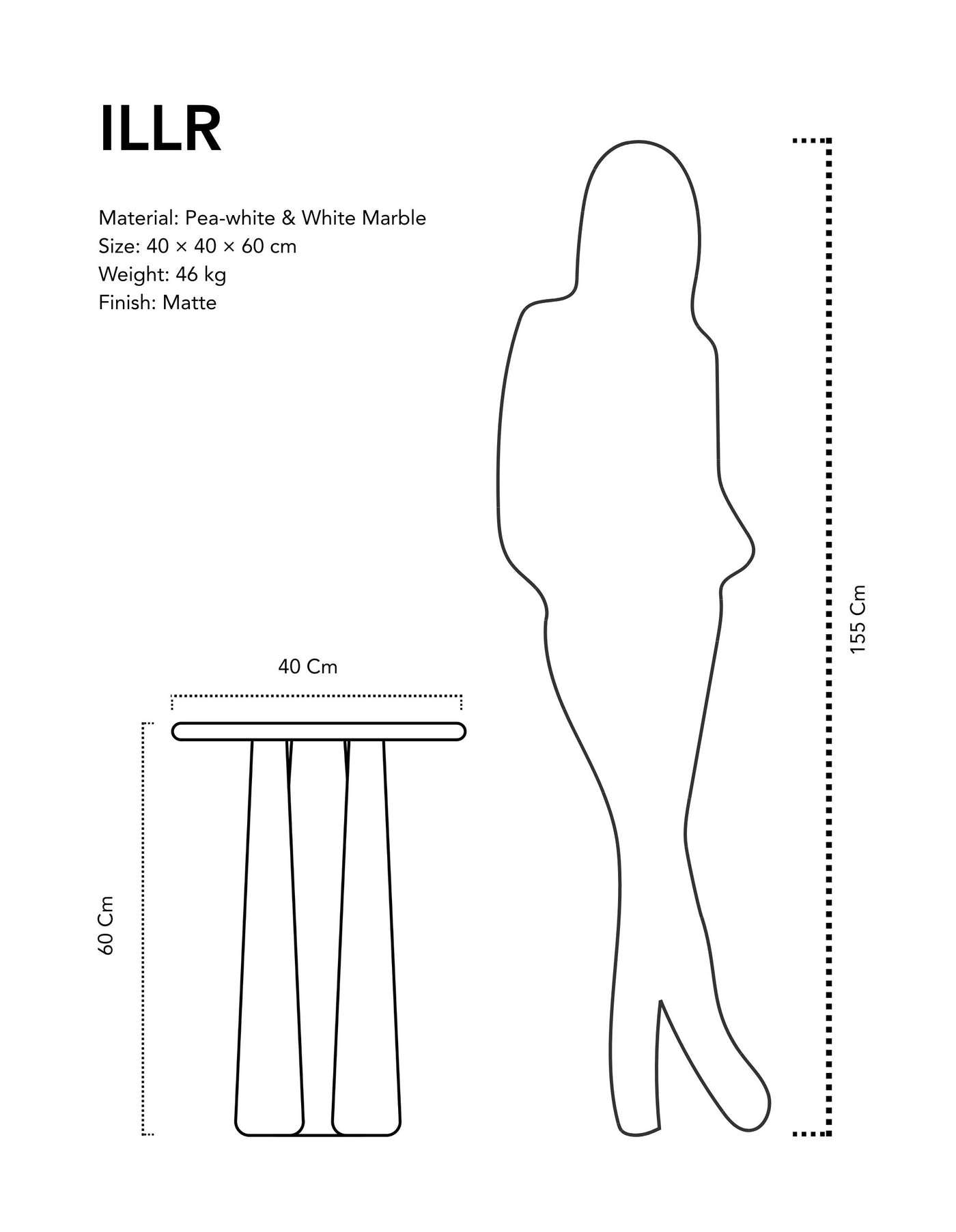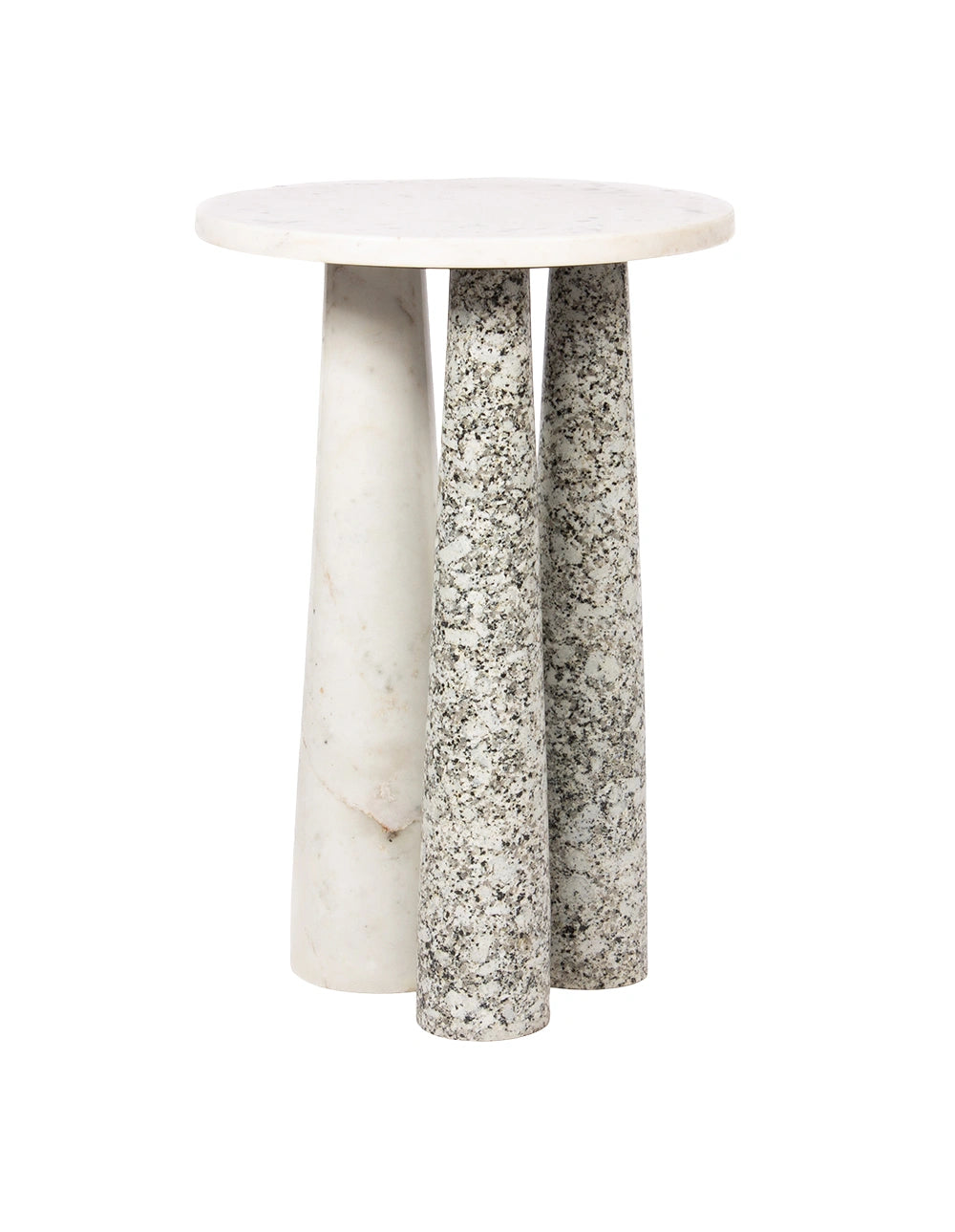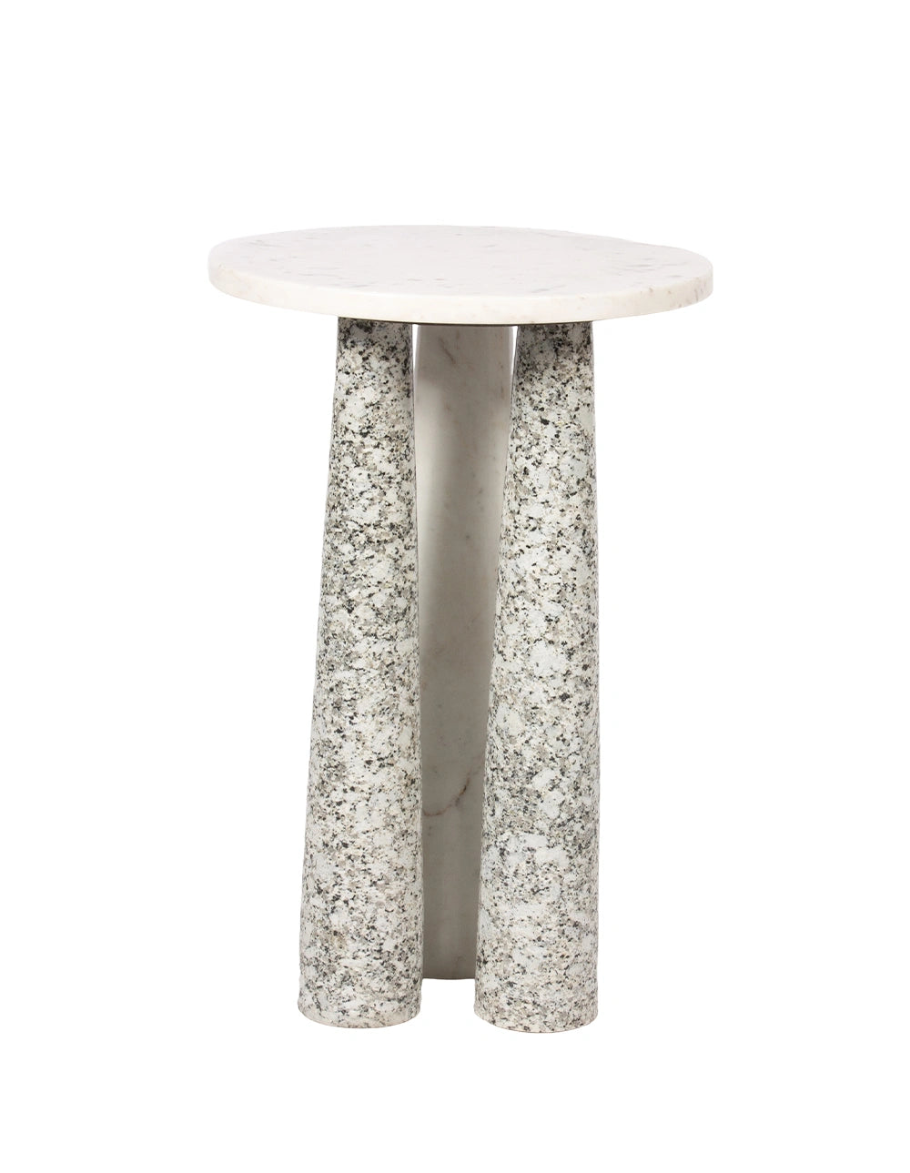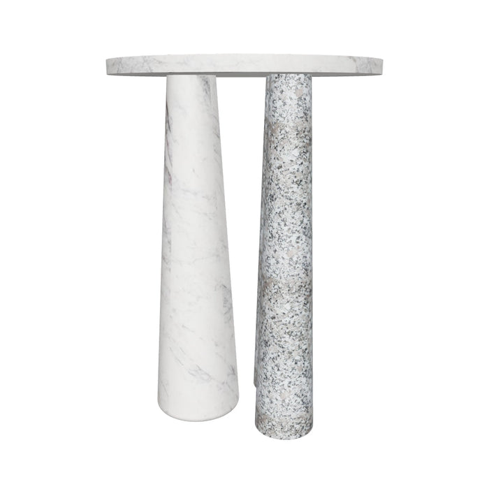 - Second leg crafted from Pea White Granite with natural speckling.