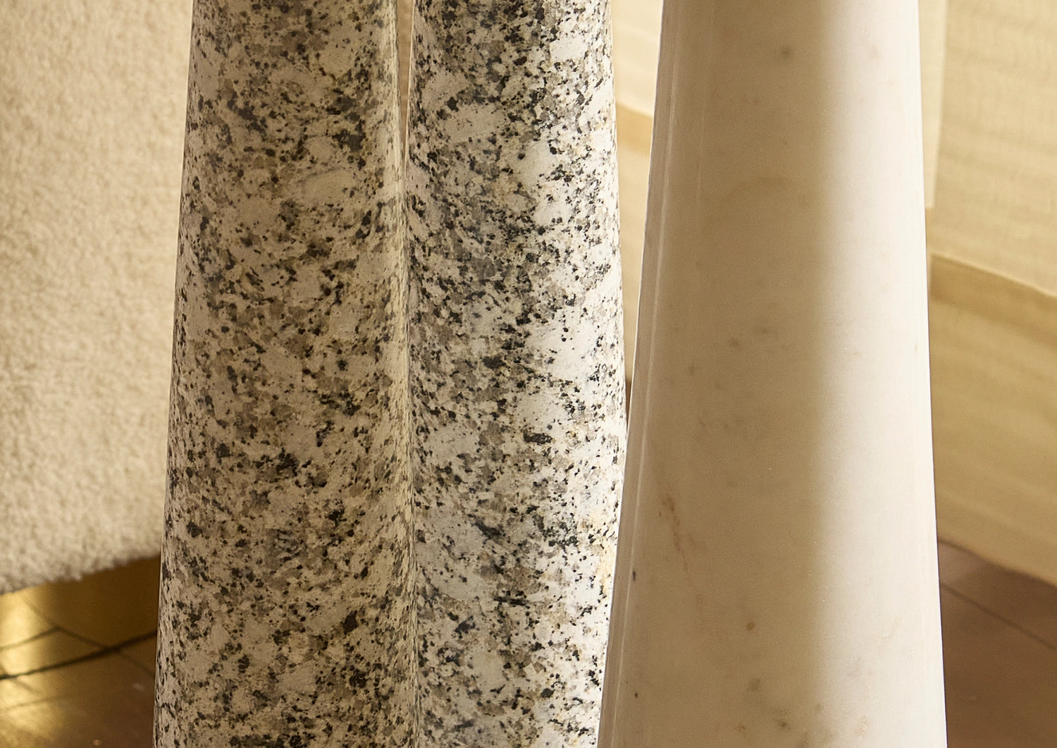 - A visual contrast between smooth and textured stone.
