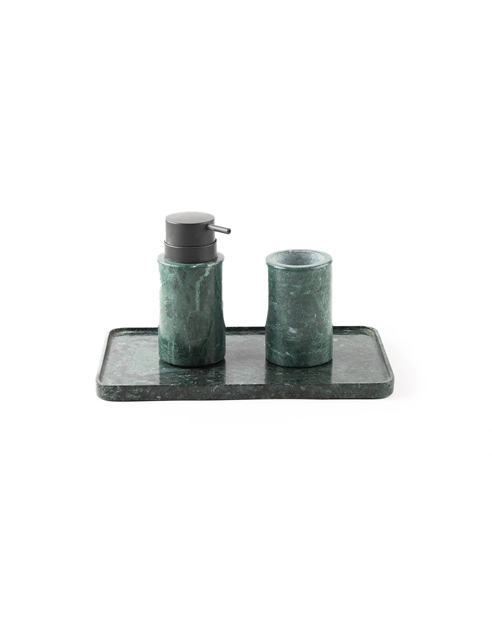 A thoughtful touch for your bathroom. This three-piece set includes a marble soap dispenser, tumbler, and tray, designed to keep your space tidy while adding a bit of everyday luxury. Made from natural marble, each piece has its own unique pattern and weight, bringing calm, beauty, and purpose to your routine.