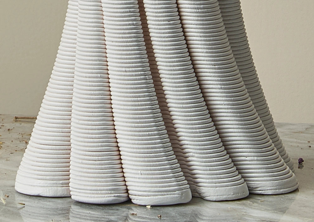 - Pleated, twisted, and ribbed forms that echo natural drapes and folds.