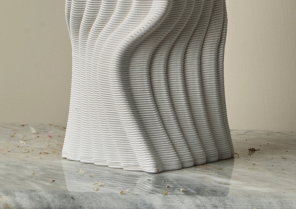 • Pleated, twisted, and ribbed forms that echo natural drapes and folds.