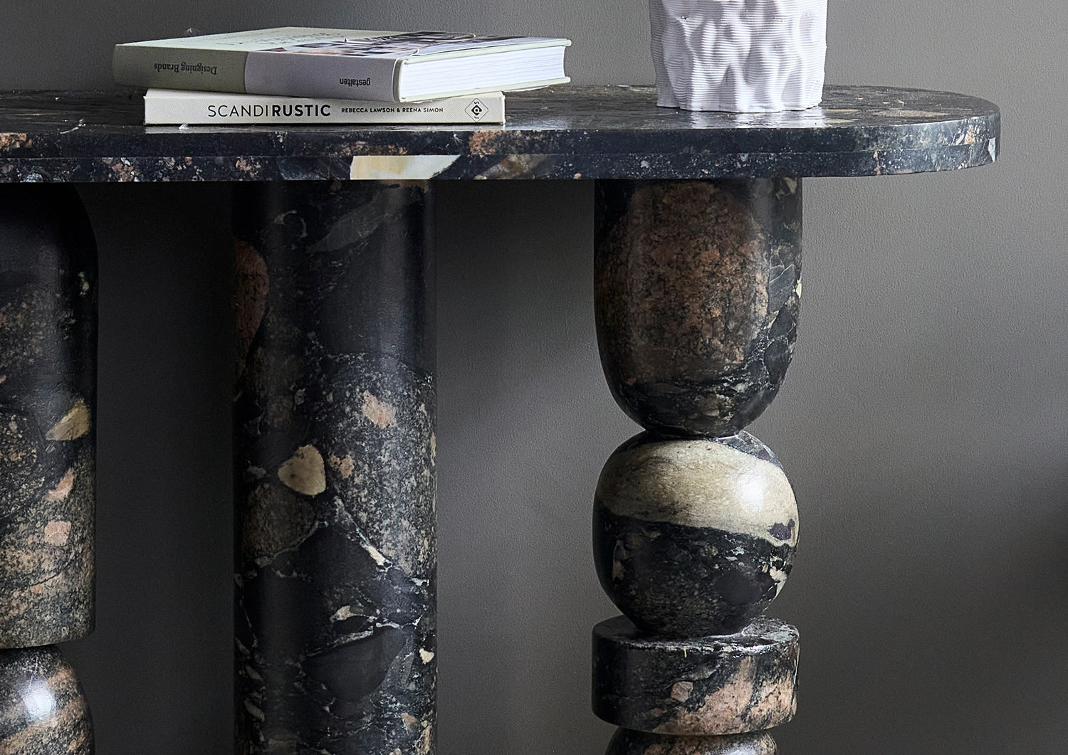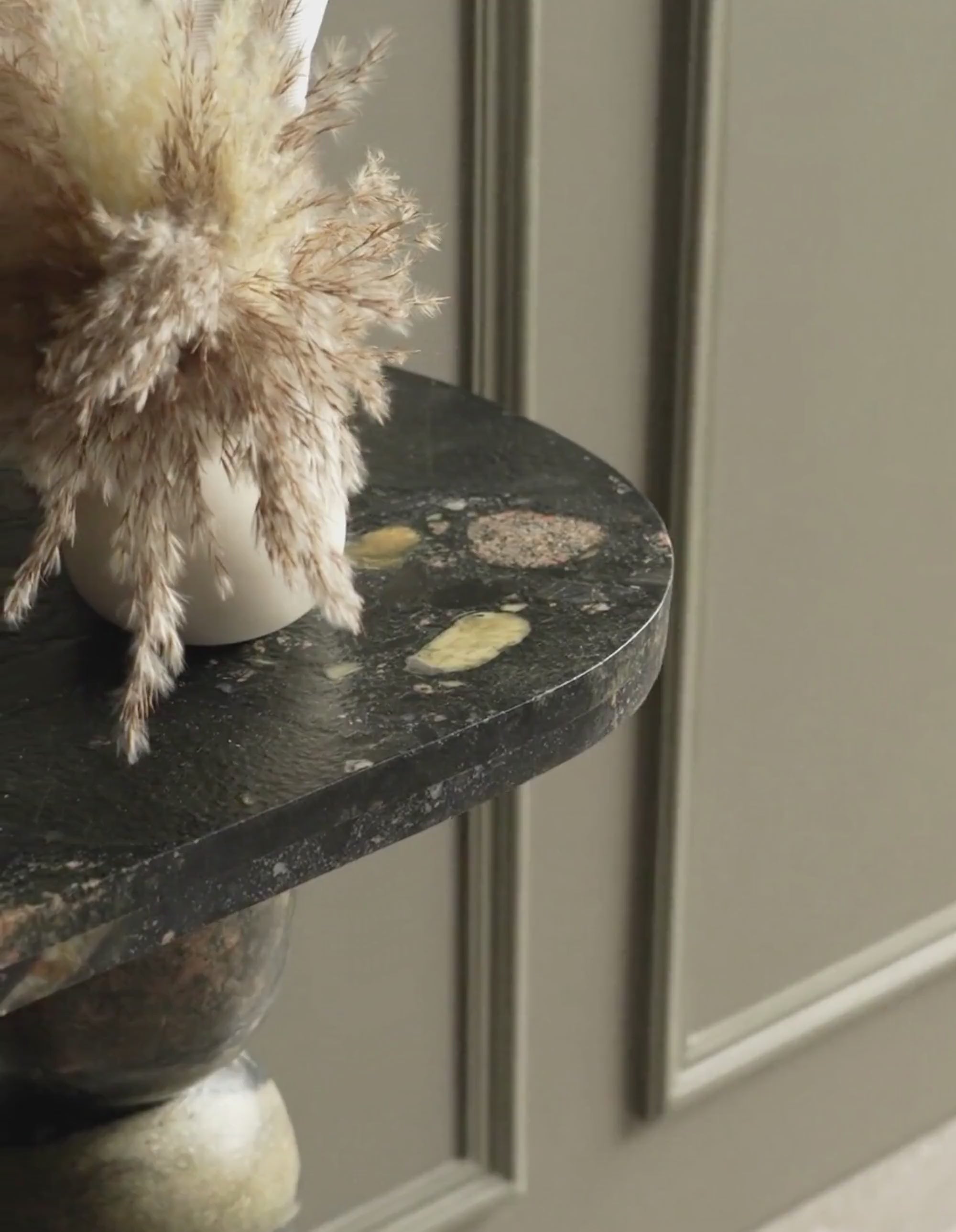 We work with a wide range of high-quality materials, including natural stones, marble, semi-precious stones, wood, and metal. Each piece is crafted with care to highlight the unique character and texture of these materials.