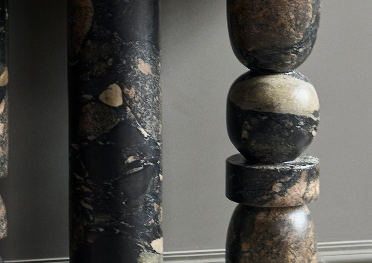 - Made from Marinace Black Marble, nicknamed “Pebblestone”.