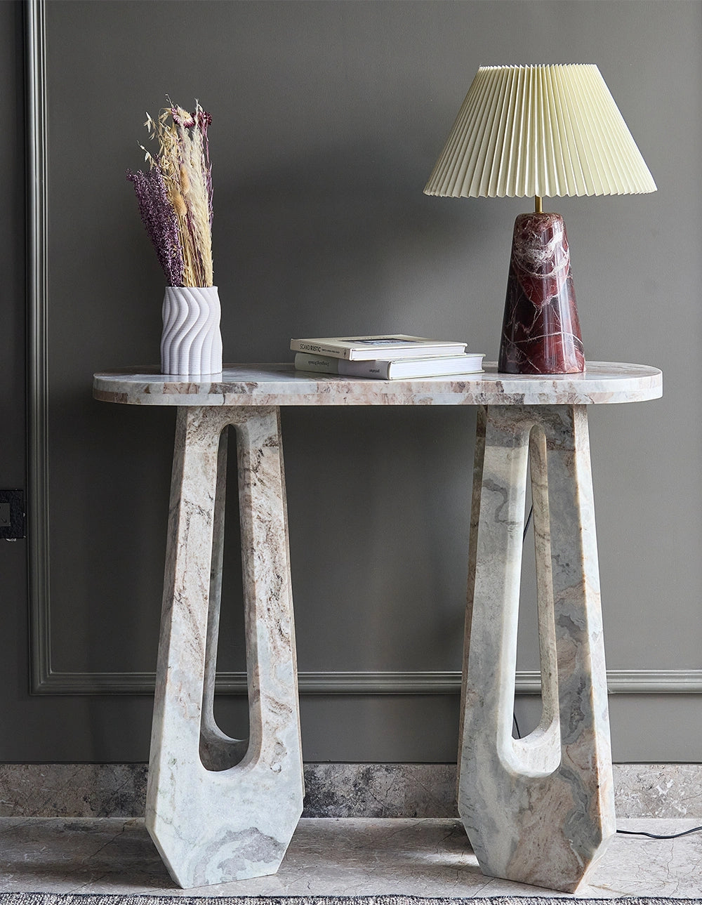 - Light grey tone with warm, earthy veining.