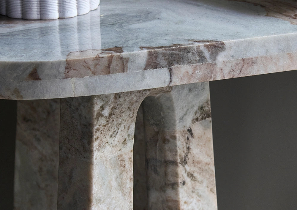 We work with a wide range of high-quality materials, including natural stones, marble, semi-precious stones, wood, and metal. Each piece is crafted with care to highlight the unique character and texture of these materials.